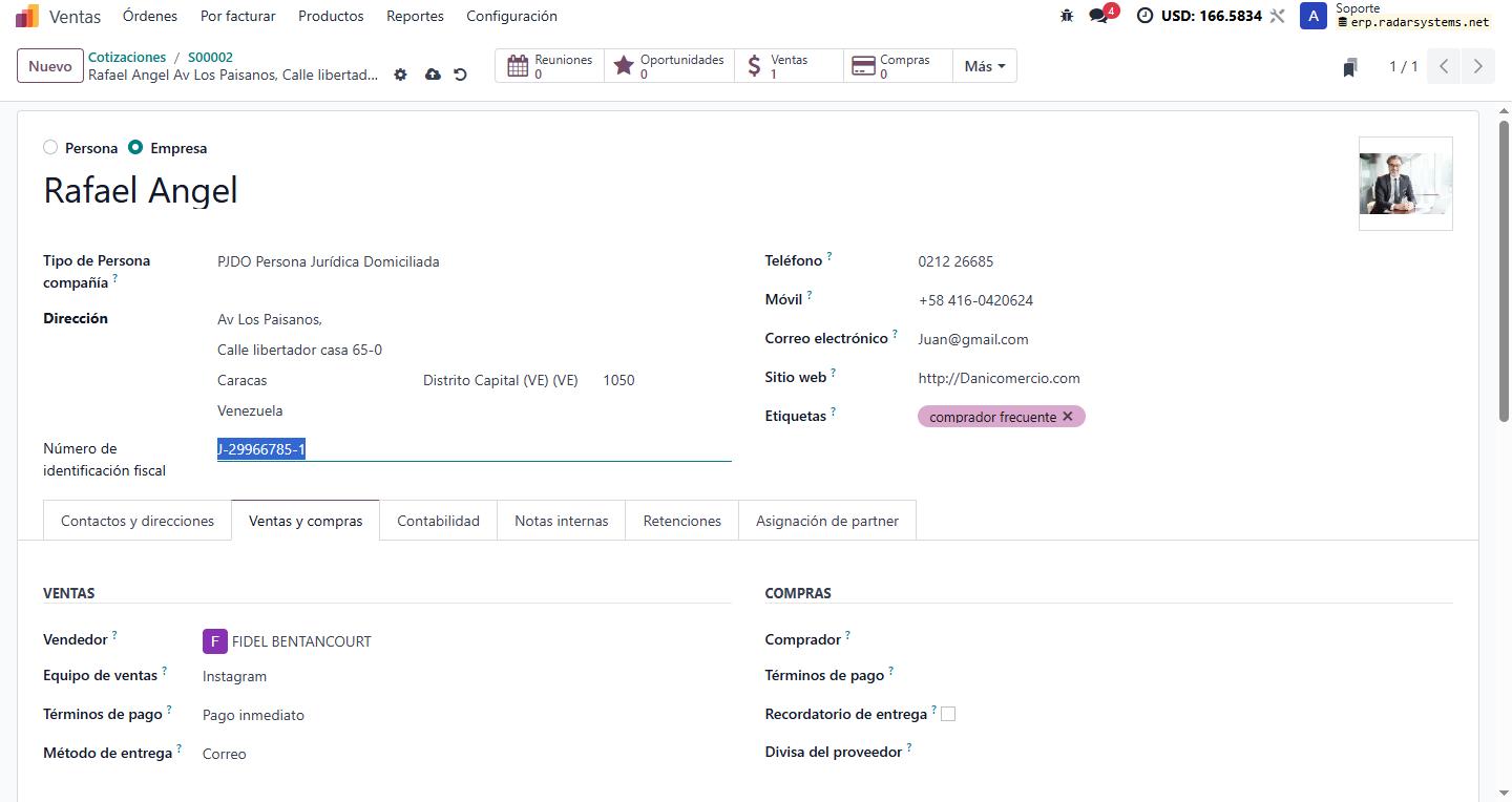 Si la información del cliente ya está en la base de datos, los campos dirección de factura y dirección de entrega se completan en automático con la información guardada para esos campos en específico con los datos del registro de contacto de ese cliente (situado en la aplicación Contactos). Si el cliente es nuevo creamos y editamos. Click a crear y editar.